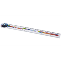 Hard kunststof liniaal met zowel markeringen in inches als centimeters. GPPS Plastic.