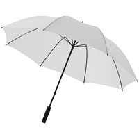 Automatische paraplu met metalen schacht en baleinen en houten handvat. Polyester.