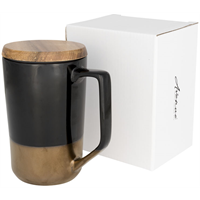 Mok met trendy, gespikkelde afwerking. Vaatwasmachinebestendig volgens EN12875-1 (minimaal 125 wasbeurten) voor alle decoratiemethoden. Inhoud 325 ml. Geleverd in een witte geschenkverpakking. Keramiek.