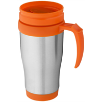 Geïsoleerde beker met schroefdop en schuiflipje. Inhoud 410 ml. Roestvrijstaal, Plastic.
