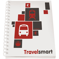 Spiraal A4 notitieboek. Dit notitieboek heeft een witte of zwarte spiraal. Verkrijgbaar in verschillende maten. Bevat een omslag van glanskarton (250 g/m2) en (80 g/m2) blanco papier. Standaard geleverd met 50 vellen, ook verkrijgbaar met 80 vellen. Decor