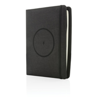 Deze RPET-portfolio met een notitieblok van 20 gelinieerde 70 grams creme-kleurige pagina’s beschikt over de nieuwste technologie. De voorkant heeft een draadloos oplaadpad voor je telefoon. (Nieuwste generaties Android, iPhone 8 en hoger). Oudere telefoo