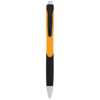 Balpen met rubberen grip. Blauwschrijvend,. Plastic.