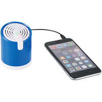 Draagbare draadloze Bluetooth speaker met interne oplaadbare batterij. 3 Watt vermogen. Inclusief Micro USB laadkabel. Geleverd in een geschenkverpakking. ABS Plastic.