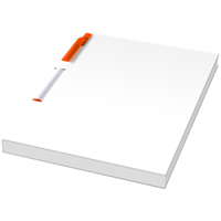 Conference set in A6-formaat. Bevat een A6 kladblok met 50 bladen (80g/m2) blanco papier en een ballpointpen in de rug. De conference set heeft een harde omslag (350g/m2). Volledig gekleurde decoratie mogelijk aan beide zijden van de omslag en op elk blad