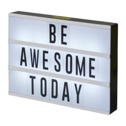 Zelf teksten maken met deze decoratieve lichtbox. Met 85 letters en symbolen. Aan-/uitschakelaar aan de zijkant. Inclusief 3x AA batterijen en geleverd in witte geschenkverpakking. PP Plastic, PS Plastic, HIPS Plastic.