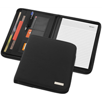 Met ritssluiting, pennenlus, documentvakken en notitieblok met 20 pagina’s gelinieerd papier. Pen en accessoires niet inbegrepen. Miccrovezel.