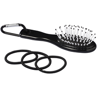 Reismodel haarborstel, 3 haar elastiekjes en een mini aluminium karabijner. ABS Plastic.