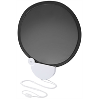 Nylon ventilator die je terugvouwt in de plastic behuizing. Inclusief nekkoord. ABS Plastic.