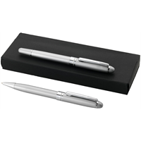 En rollerball in kartonnen geschenkverpakking. Zwartschrijvend. ABS Plastic, Metaal.