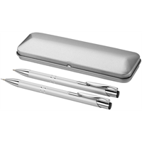 En vulpotlood in geschenkblik met EVA inlay. Zwartschrijvend. Aluminium, Tin.