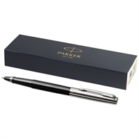 Jotter rollerbalpen is een moderne interpretatie van de originele icoon. Met de iconische glanzende kunststof huls, gepolijste roestvrijstalen dop en pijlklem. Verpakt in een Parker geschenkverpakking. Plastic, Roestvrijstaal.